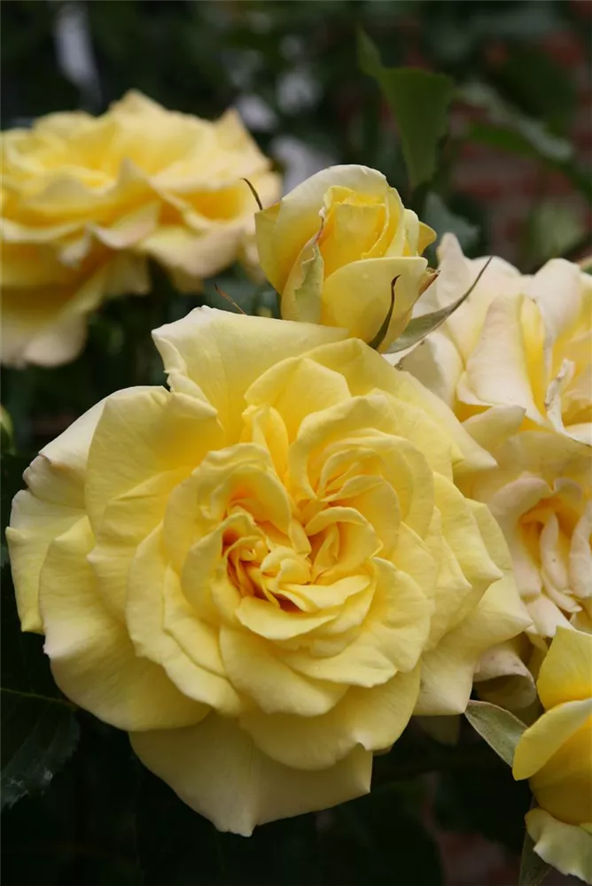 Die gelben, schalenförmigen Blüten sind starkgefüllt und erscheinen von Juni bis Oktober. Diese werden etwa 10 - 12 cm groß und sind angenehm duftend.
