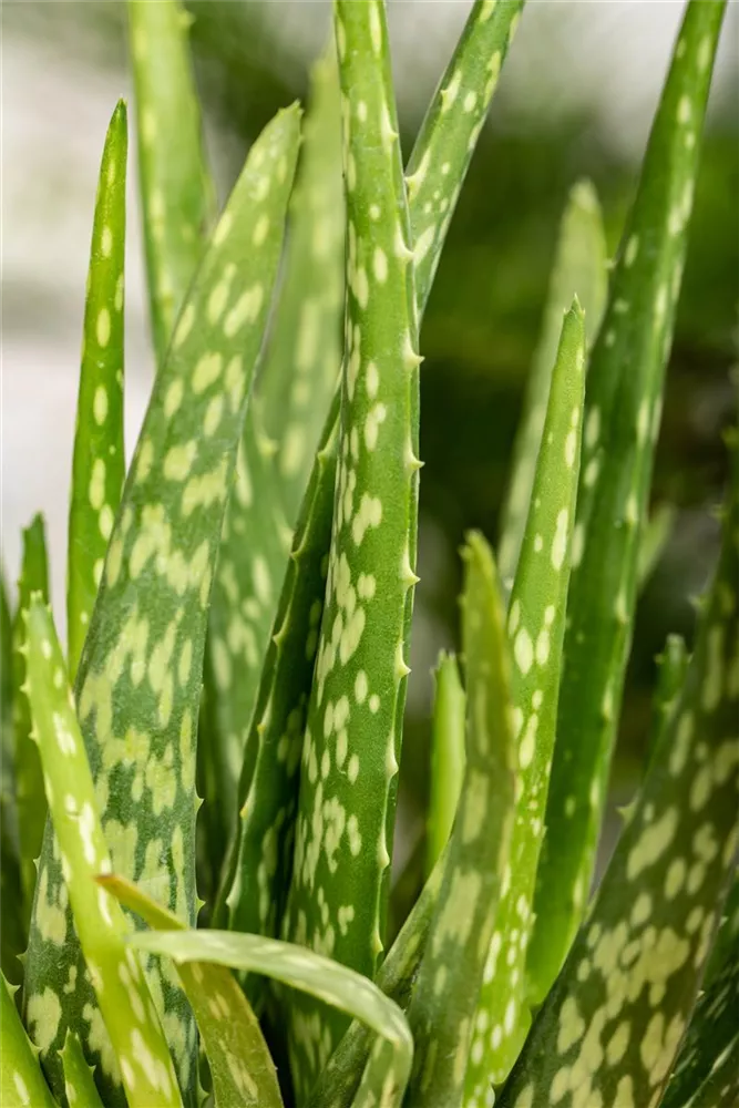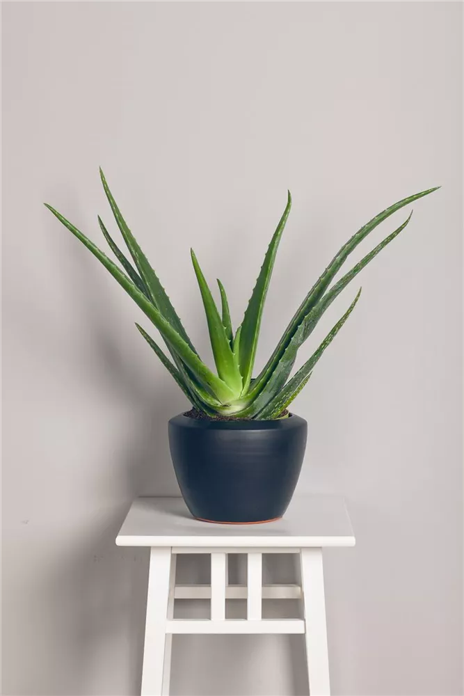 Die Echte Aloe (Aloe vera) zählt zu den pflegeleichten Pflanzen und besitzt hellgrüne, dickfleischige Blätter. Diese rosettenartige und sukkulente Pflanze gedeiht am besten an einem sonnigen Standort.