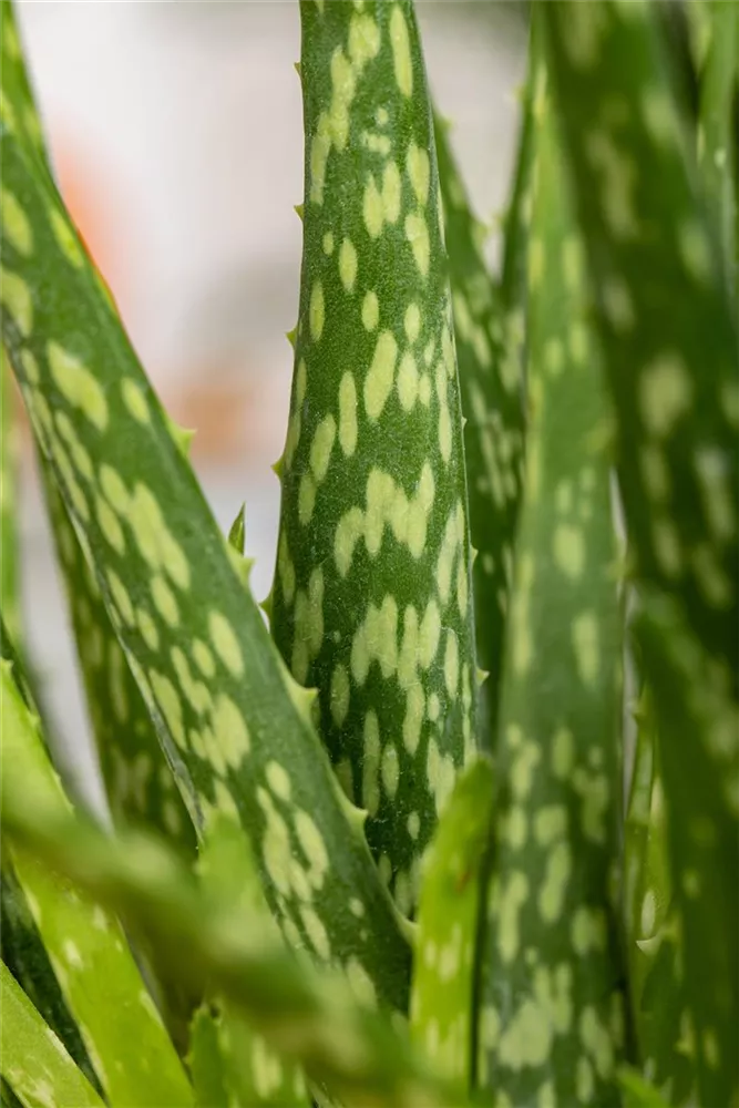 Zum Verzehr geeignet. Die immergrünen Blätter der Echte Aloe sind hellgrün, dickfleischig.