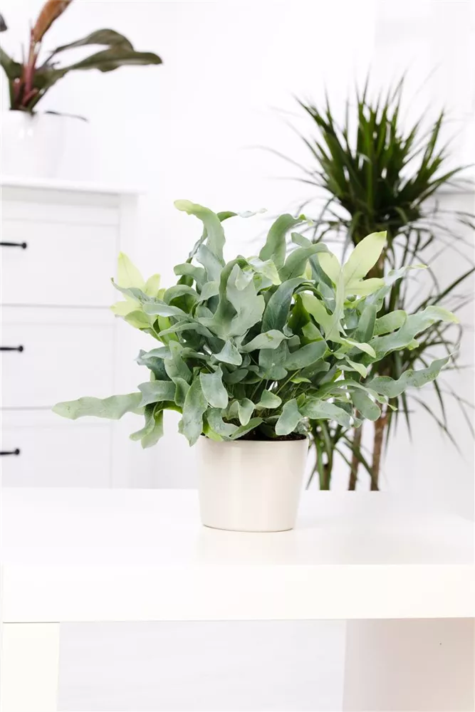 - dekorative gefingerte, lanzettliche oder geschnittene Blattwedel