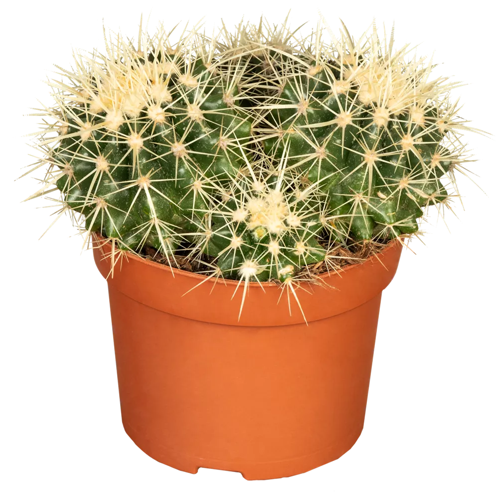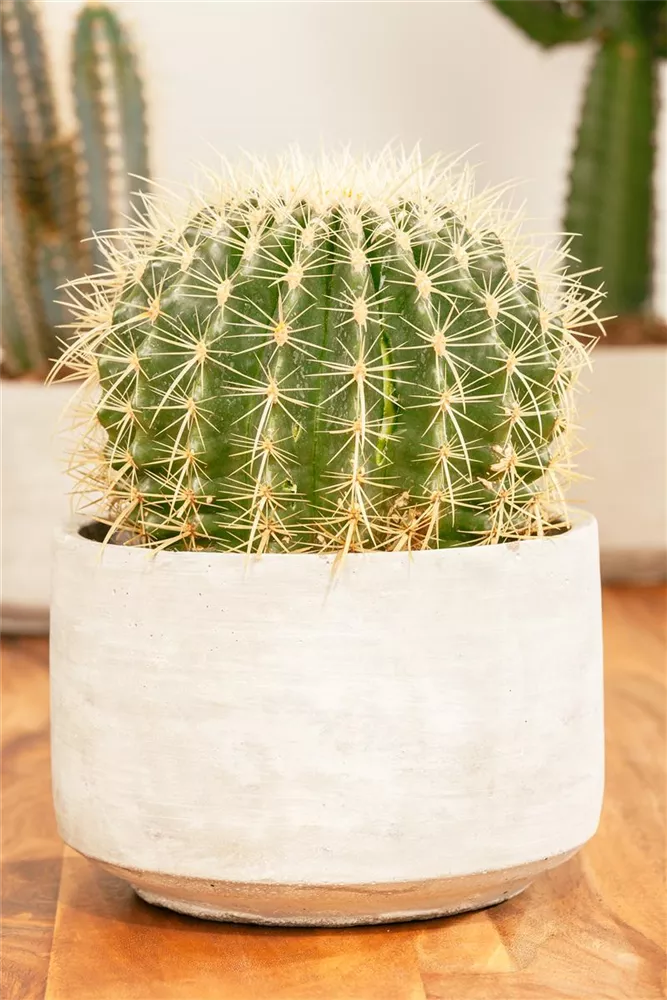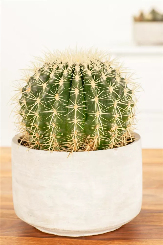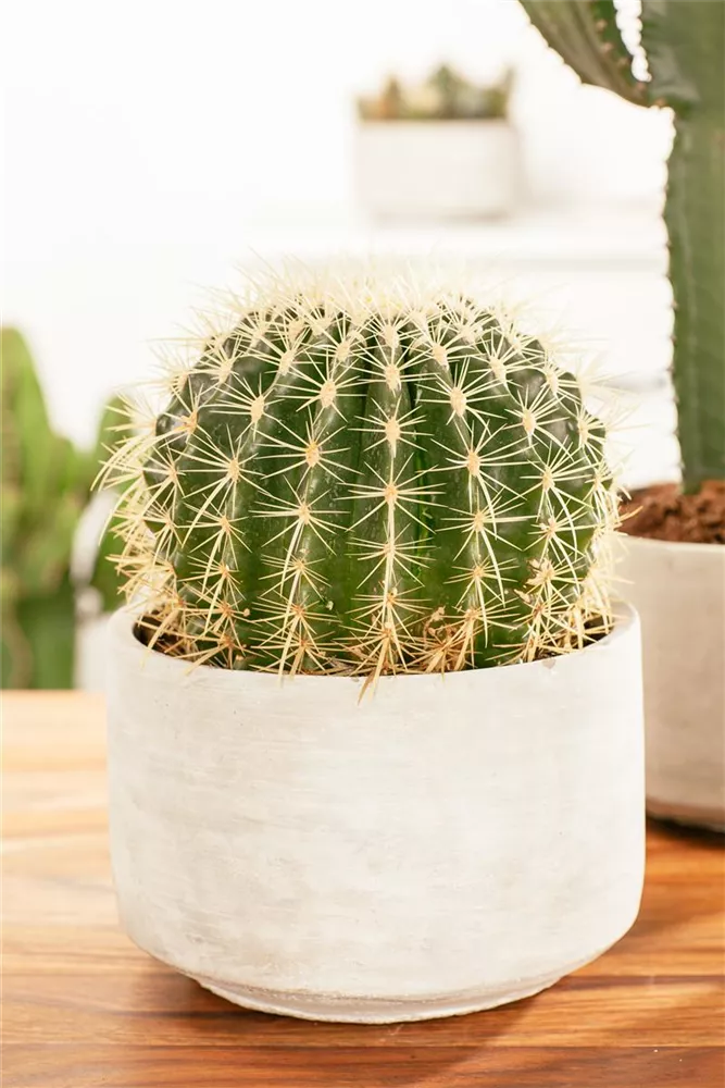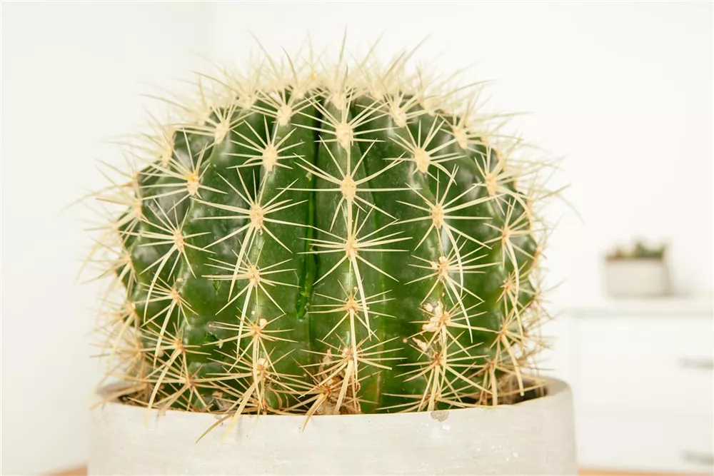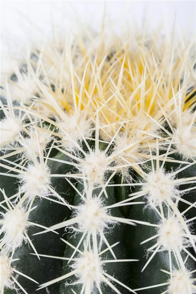 Die Triebe von Echinocactus grusonii sind bedornt.