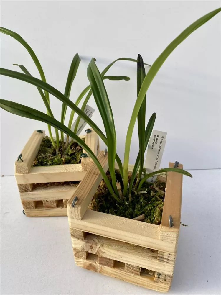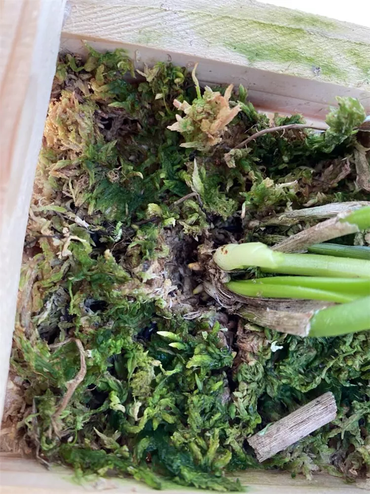 Die Pflanzen wurden in ein Holzkörbchen gepflanzt und das Wurzelwachstum beginnt