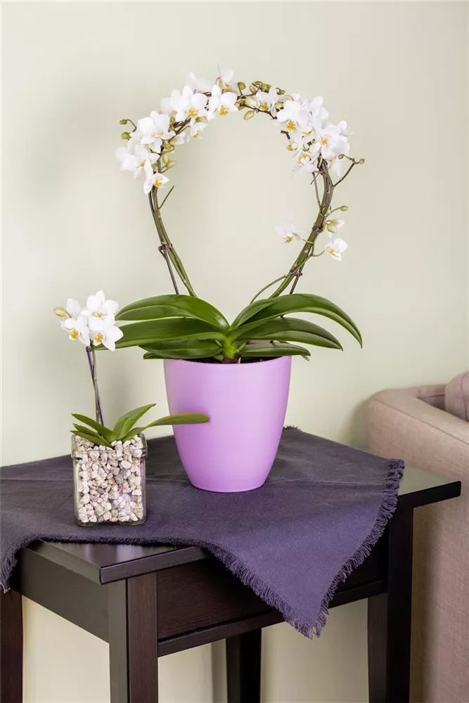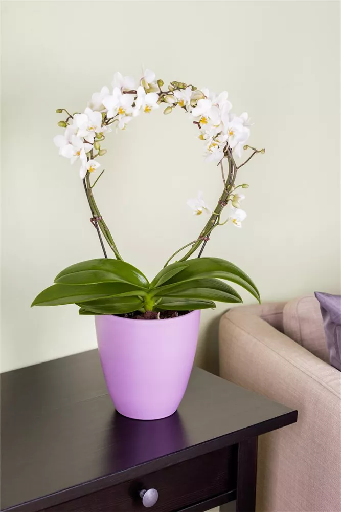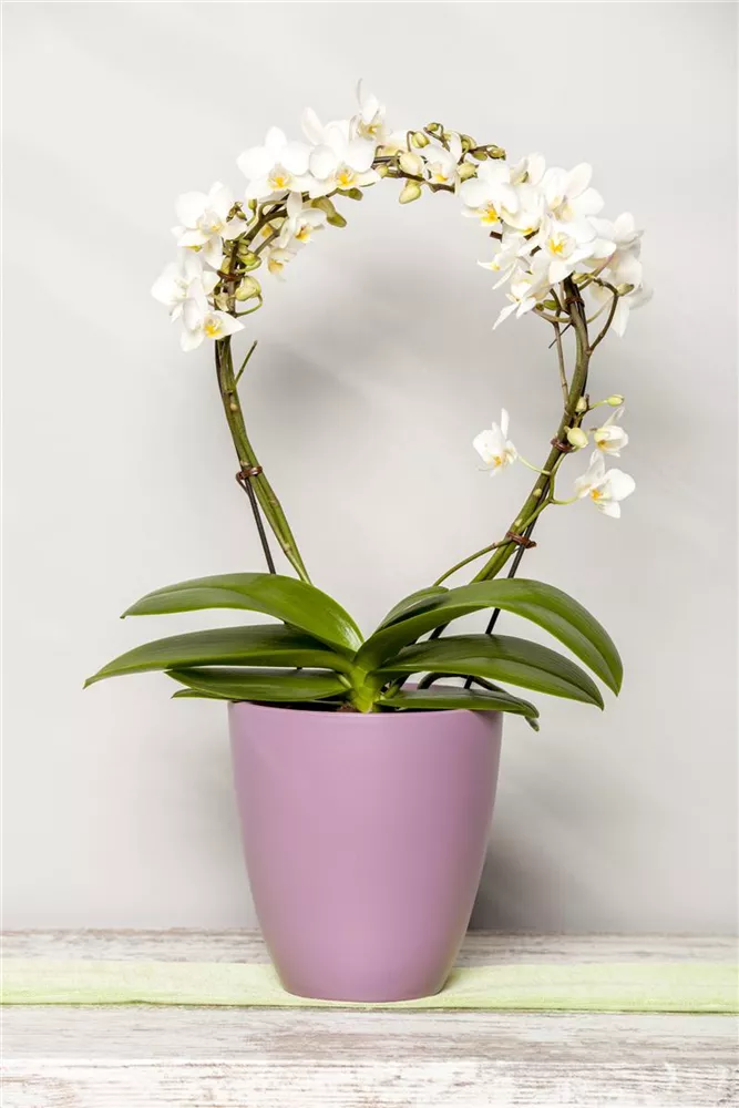 Die Schmetterlingsorchidee (Phalaenopsis) ist eine schöne, in verschiedenen Farben blühende Orchidee. Ihre lippenförmigen Blüten sind sehr dekorativ und erscheinen in Rispen von Januar bis Dezember. Für das optimale Wachstum sorgen ein heller Standort sowie ein spezielles Orchideen-Substrat.