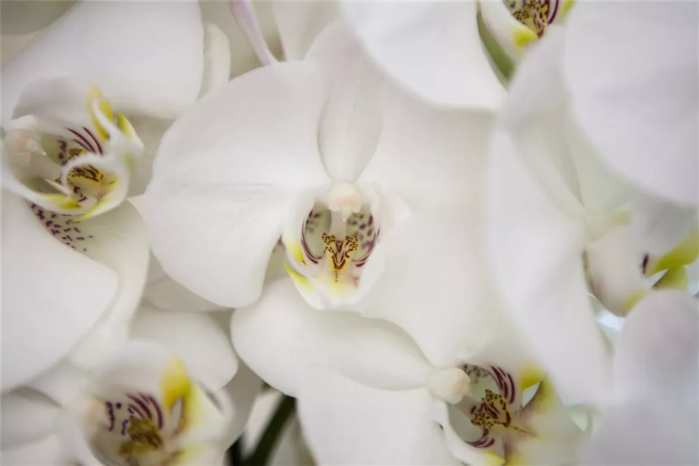 Phalaenopsis, weiß bringt von Januar bis Dezember dekorative weiße Blüten hervor.
