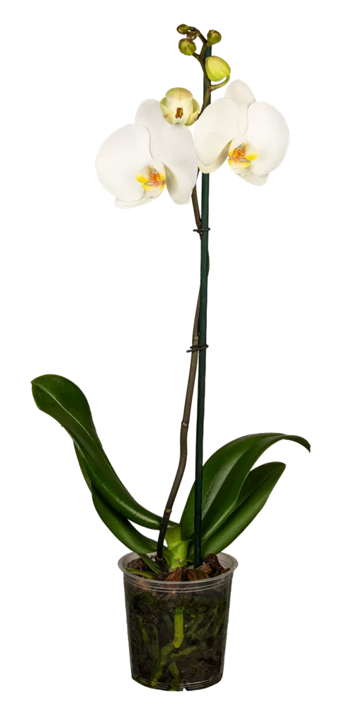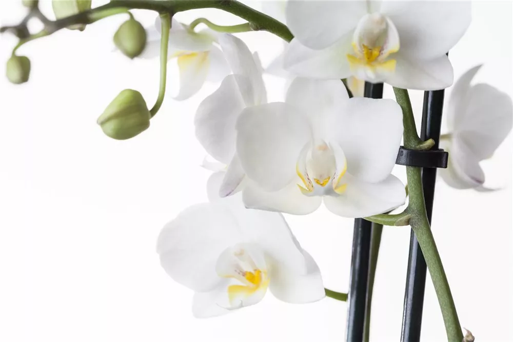 Phalaenopsis, weiß bringt von Januar bis Dezember dekorative weiße Blüten hervor.