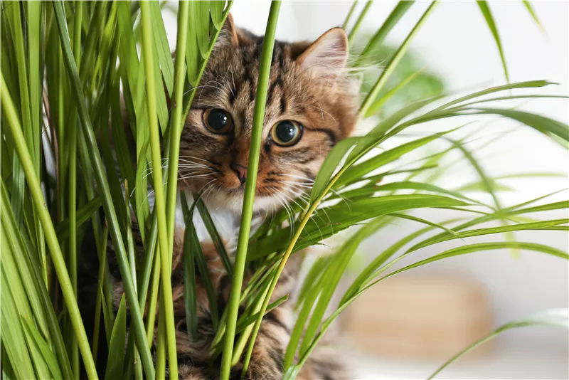 Auch die Goldfruchtpalme (Dypsis lutescens) eignet sich hervorragend für ein tierfreundliches Zuhause. Die schönen grünen Wedel sorgen nicht nur das ganze Jahr über für ein entspanntes Urlaubsgefühl, sondern Dank ihrer luftreinigenden Eigenschaften verbessert sie zudem auch das Raumklima.