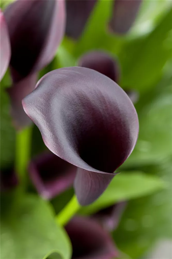 Die Blätter der Zimmercalla 'Odessa' sind dunkelgrün.